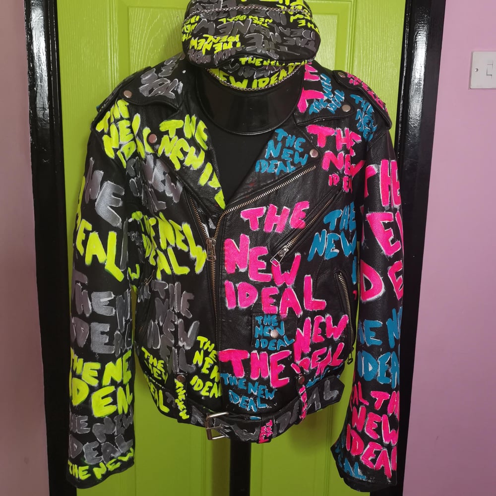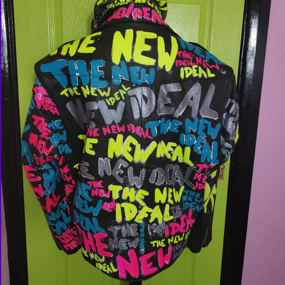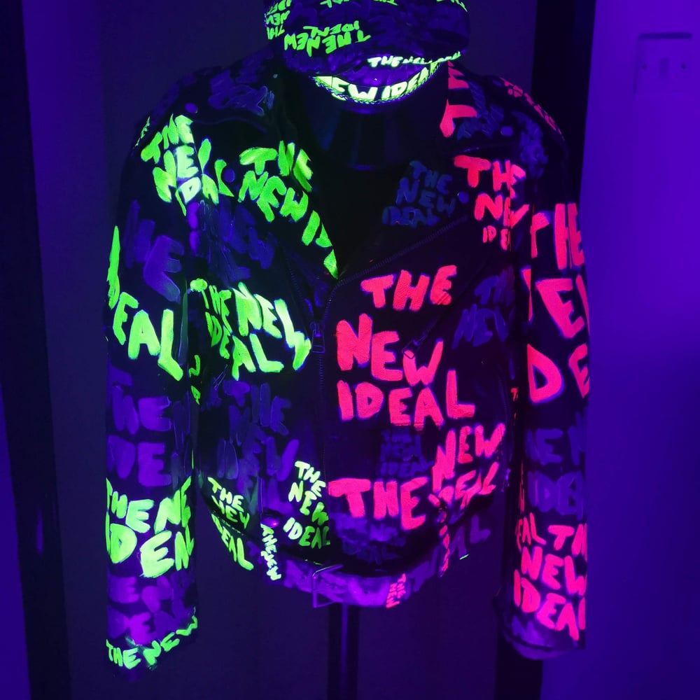 UV GLOW YELLOW & PINK "THE NEW IDEAL" HAND PAINTED VINTAGE BIKER JACKET